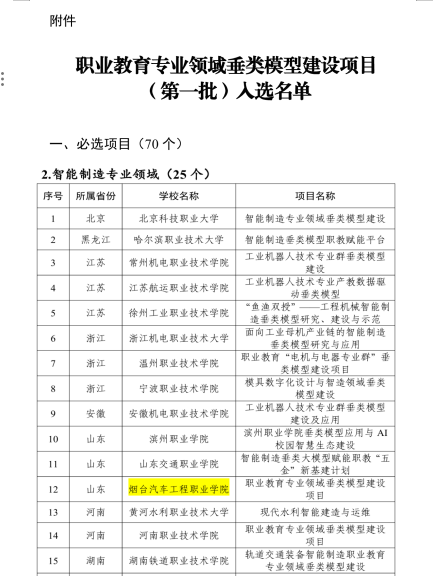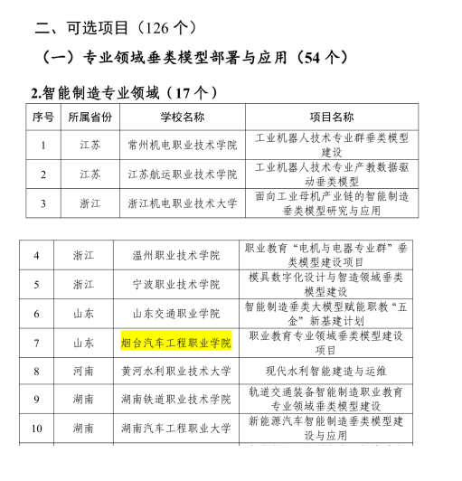 日,教育部职业教育发展中心公布了职业教育专业领域垂类模型建设项目(第一批)入选名单,我院成功入选第一批智能制造专业领域项目。